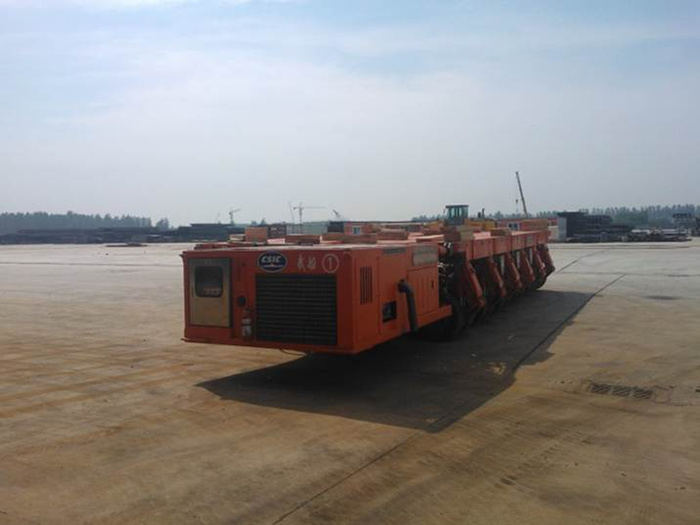 整車寬度 2.43m,是一種配備了液壓升降、液壓驅(qū)動(dòng)轉(zhuǎn)向、液壓驅(qū)動(dòng)行走的特種車輛,用于重型貨物的場地內(nèi)周轉(zhuǎn)運(yùn)輸,有橫向駕駛、普通、前軸轉(zhuǎn)向、后軸轉(zhuǎn)向、 斜向、角向 90°、原地轉(zhuǎn)圈七種轉(zhuǎn)向模式。車輪大轉(zhuǎn)角±110o。每軸線總質(zhì)量 48t,每軸線載質(zhì)量 43.5 t。配備無線遙控器(也可有線使用)。 液壓管路、電氣電纜連接均采用液壓快速接頭和電氣連接器,可多車并車,效率高。