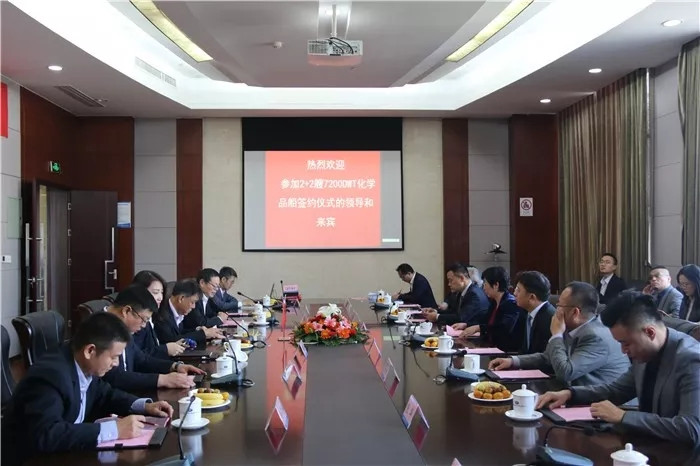 自2017年初雙柳武船獲悉產品訂單消息后,公司上下積極籌備,公司黨委書記、董事長楊國平多次拜訪船東進行深入的交流;簽約前夕,雙柳武船組織商務人員和技術人員與船東公司、設計院進行商務談判和技術澄清,為更好地和船東公司合作創造條件,也為這次簽約7200噸不銹鋼化學品船訂單鋪平道路。