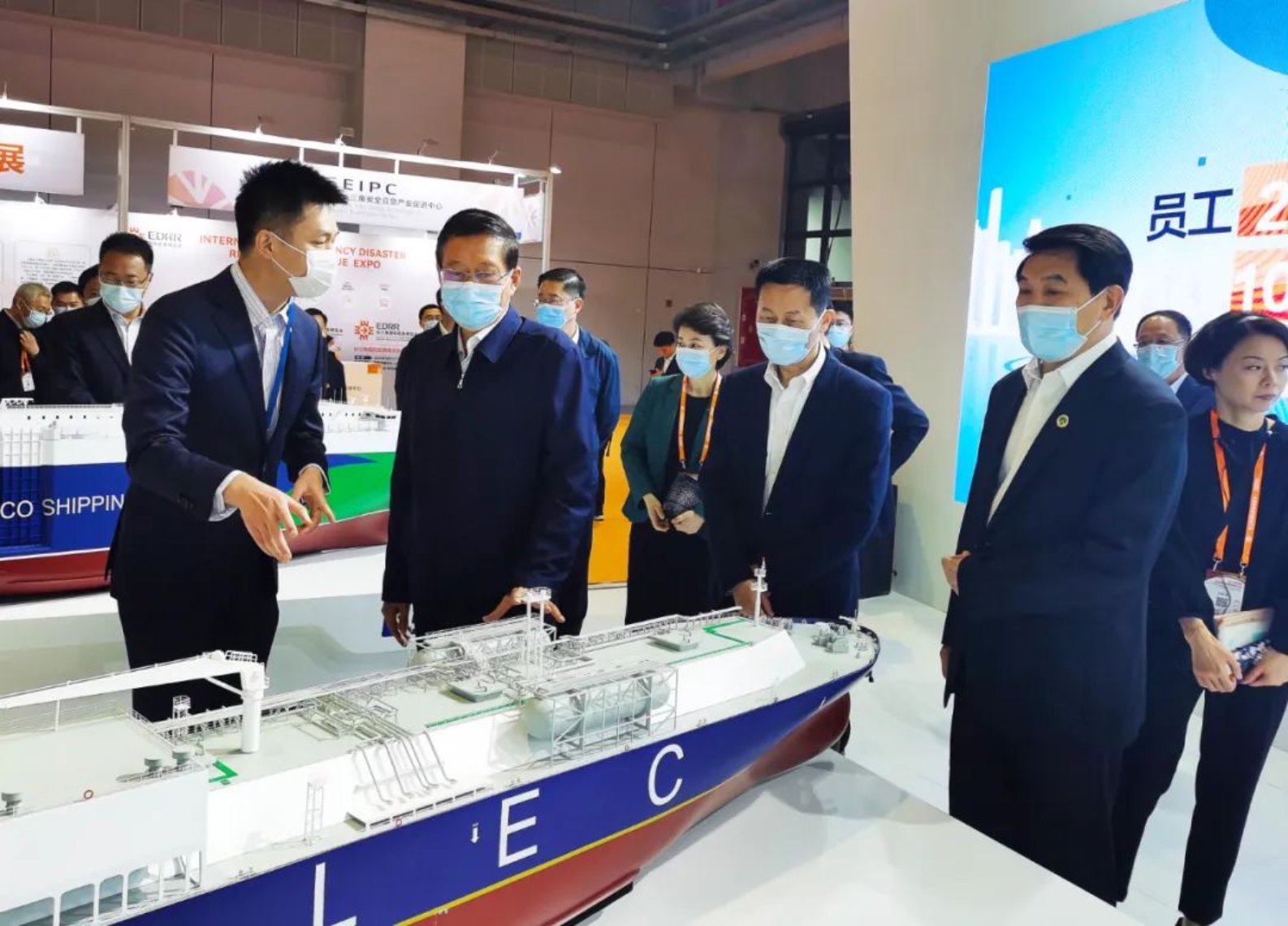 ▲應急部宋元明副部長、上海市常務副市長吳清、三省一市應急廳局長、合肥市市長、應急部司局級領導、部分外省市應急廳副廳長等一行領導現場蒞臨中國船舶集團展位參觀