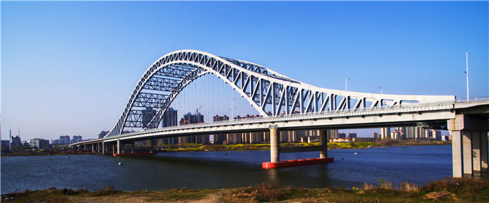 新六兩河大橋位于老六兩河大橋上游300米,大橋全長1945米,橋面寬約45米,雙向八車道,主跨達到240米。為了不影響唐白河的通航能力,大橋采用下承式連續剛桁架拱橋,從遠處看,大橋形似一道橫跨唐白河的美麗彩虹,顏值爆表,這種類型的橋梁不僅在襄陽是第一座,也是鄂西北首座,被襄陽市民們譽為一張新的城市名片。