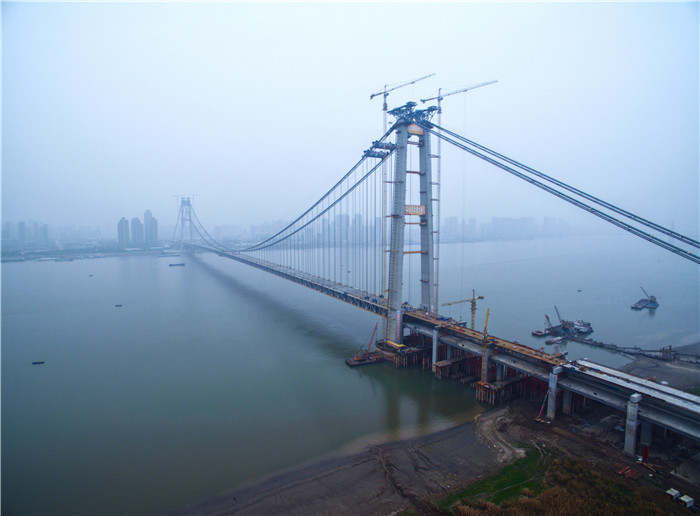 大橋預(yù)計今年9月底建成通車,為武漢軍運會提供重要交通保障。