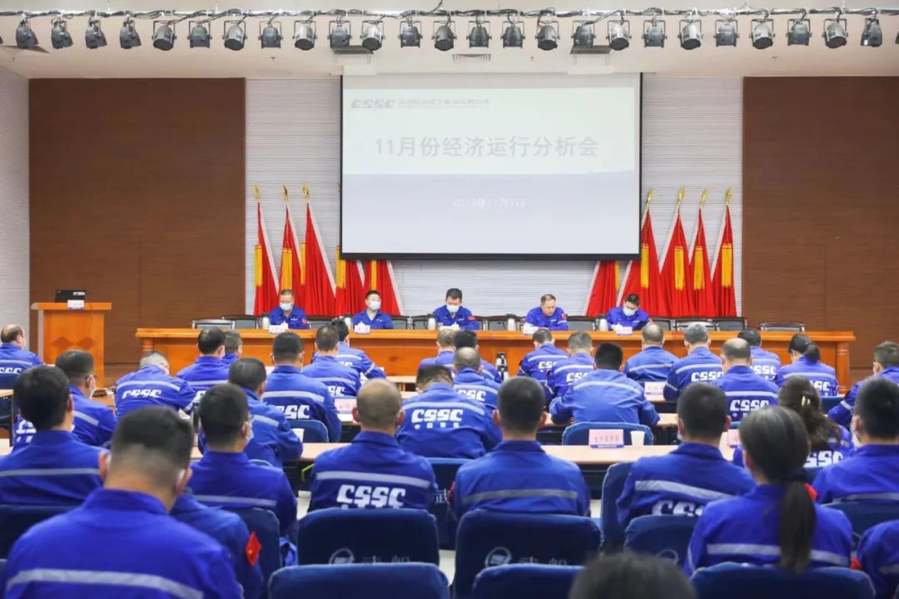 2022年11月7日下午,中國船舶武船召開2022年11月份經濟運行分析會,總結公司10月份經濟運行、生產、經營情況,分析當前形勢,部署下一階段重點工作任務。會議由公司黨委委員、副總經理田軍主持,公司黨委書記、董事長姜濤出席會議并講話,公司領導班子成員唐瀅、陳仲明、左照海出席會議并作工作點評,公司全體中層及以上領導干部參加會議。會上,經營部、生產管理部、軍工部、財務部、人力資源部、企劃部、戰略部、起運部等8家單位進行工作匯報,公司領導班子逐一進行點評和工作部署。