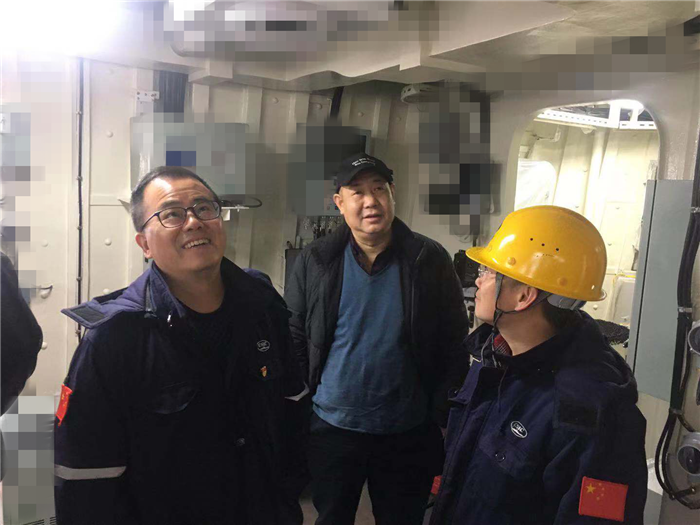 在相關人員的陪同下,從駕駛室到住艙、從住艙到機艙、從機艙到各專業工作艙室,姚勝華每到一處,詳細了解當前各區域在施工過程中的重難點及實施情況,檢查產品實物質量,針對不足之處,提出若干優化建議及改進方案。