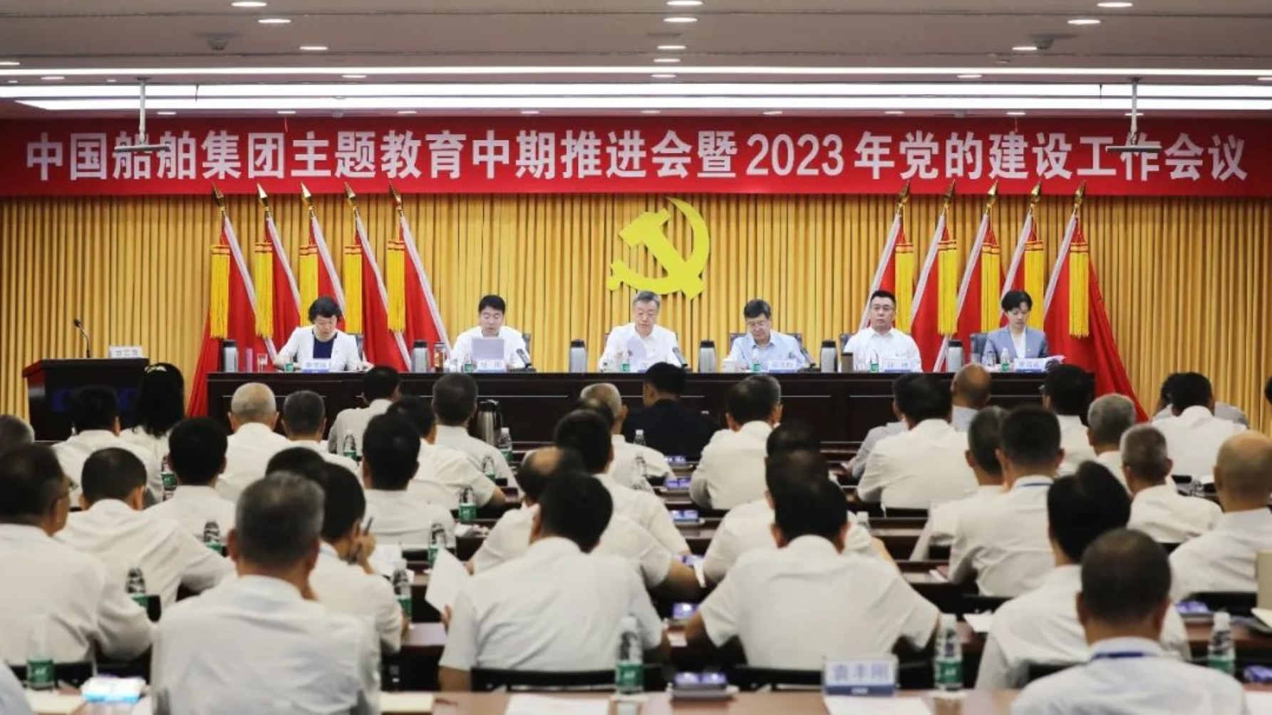 7月5日,中國船舶集團有限公司召開主題教育中期推進會暨2023年黨的建設工作會,深入貫徹落實習近平新時代中國特色社會主義思想和黨的二十大精神,學習貫徹習近平總書記對黨的建設和組織工作的重要指示,總結集團公司黨建工作和主題教育進展情況,部署下一階段重點任務,持續推動主題教育深化、內化、轉化,以高質量黨建引領保障高質量發展。