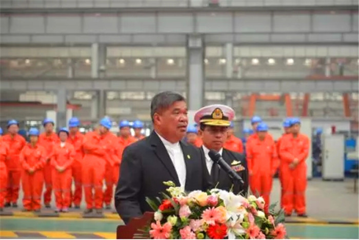 10月23日,馬來西亞瀕海任務艦項目2號艦開工及1號艦上船臺活動在武船雙柳基地成功舉行。中船重工總經理吳永杰、馬來西亞國防部部長沙布先生出席活動并致辭。中船重工副總經理吳曉光,馬來西亞國防軍總司令祖克弗里上將,武船董事長楊志鋼、副總經理姚勝華及馬來西亞海軍、馬來西亞莫實德船廠、中國政府及軍隊相關部門、中國船級社、中船重工等單位相關領導及代表蒞臨活動現場。