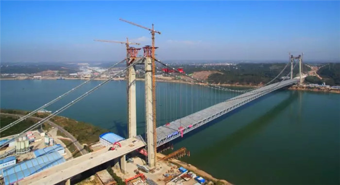 湖北白洋長江大橋是宜昌至張家界高速公路在宜昌境內(nèi)跨越長江的通道,也是湖北省“753”骨架公路網(wǎng)中規(guī)劃“縱6”的重要組成部分,全長2160米,主跨1000米,為雙塔鋼桁梁懸索橋。
