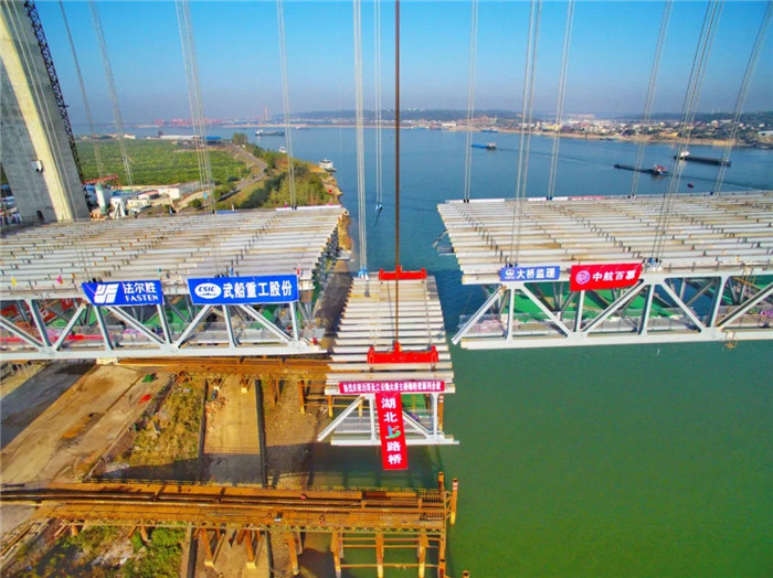 11月15日上午,隨著白洋長江大橋最后一片鋼桁梁吊裝到位,由武船重工股份承建的白洋長江大橋主橋?qū)崿F(xiàn)合龍。