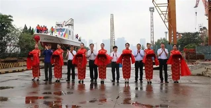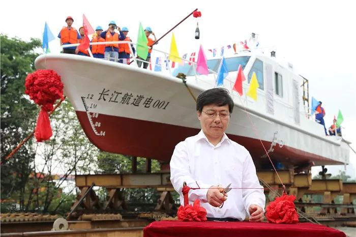 ▲嘉賓為“長(zhǎng)江航道電001”下水剪彩