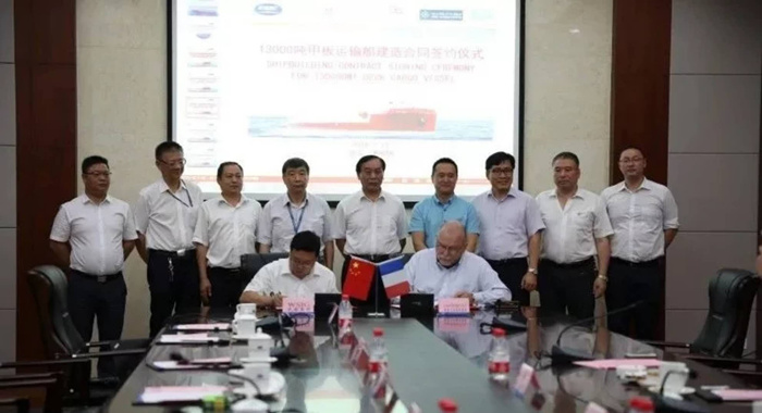 2018年7月25日,中船重工武船集團海工院在現(xiàn)有4艘13000噸甲板運輸船的訂單基礎(chǔ)上,與法國路易達孚集團新簽署了4艘后續(xù)船的EPC建造合同。
