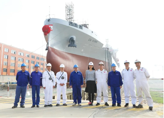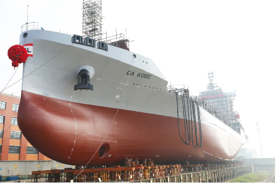 4月3日,由中國船舶集團武昌造船建造的1100TEU集裝箱船4號船 順利下水!標志著武昌造船為CA SHIPPING建造的1100TEU集裝箱船均完成船臺建造工作!該型船1號船已順利交付,2號船正在海試階段,3號船正在系泊試驗階段。