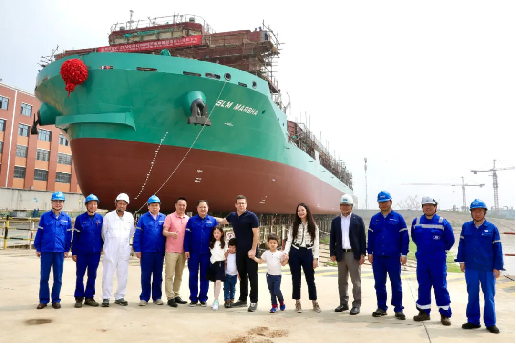 PT SLM公司首席執行官Matthieu Lavoine,韓國船級社上海分公司總經理梁允浩,金海洋船舶管理有限公司總經理紀偉,武昌造船黨委委員、副總經理田軍及相關單位人員出席下水活動。
