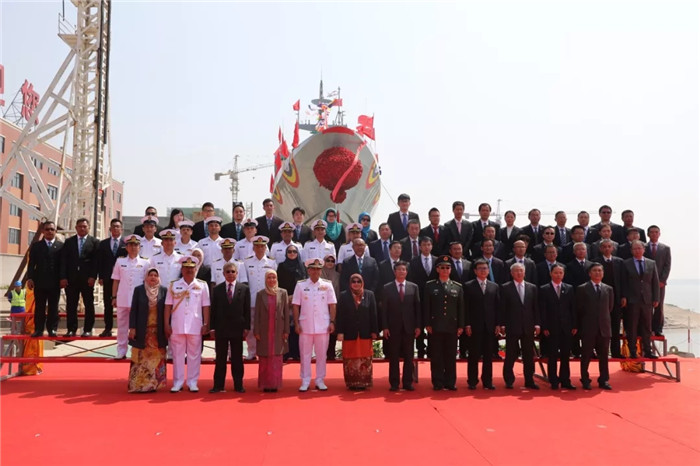 馬來西亞海軍司令瑞扎上將,中船重工副總經(jīng)理吳曉光,中船重工總經(jīng)理助理、中國船貿(mào)黨委書記、董事長徐子秋,中船重工武船集團(tuán)總經(jīng)理梁師清,副總經(jīng)理姚勝華,馬來西亞莫實(shí)德重工有限公司董事拉姆蘭及國防科工局、中國船級(jí)社等有關(guān)單位領(lǐng)導(dǎo)嘉賓出席儀式。儀式現(xiàn)場,馬來西亞國防部長夫人諾瑪女士為該艦命名并行擲瓶禮。