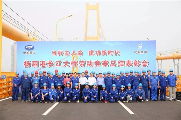 武船重工股份先后在楊泗港大橋上開展了“獻(xiàn)禮十九大 大戰(zhàn)120天”專項(xiàng)勞動(dòng)競(jìng)賽、聯(lián)合武漢市總工會(huì)開展了“當(dāng)好主人翁 建功新時(shí)代”勞動(dòng)競(jìng)賽活動(dòng),先后創(chuàng)下了“單個(gè)項(xiàng)目單日發(fā)運(yùn)5100噸”“36天完成全橋節(jié)段吊裝”等新紀(jì)錄。