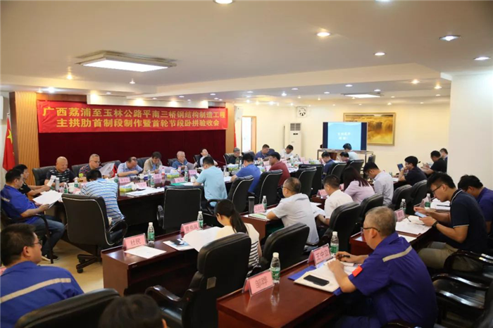 近日,平南三橋主拱肋首制段制造暨首輪節(jié)段臥拼專家驗收評審會在武船重工股份江門基地召開,國內(nèi)知名橋梁專家、項目業(yè)主、總包、設計、檢測單位代表,及公司項目相關負責人參加會議。
